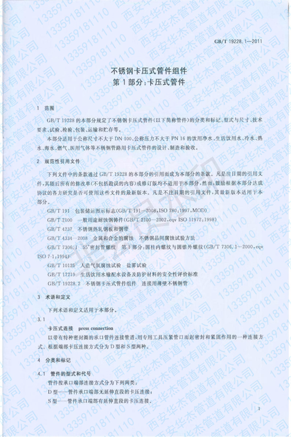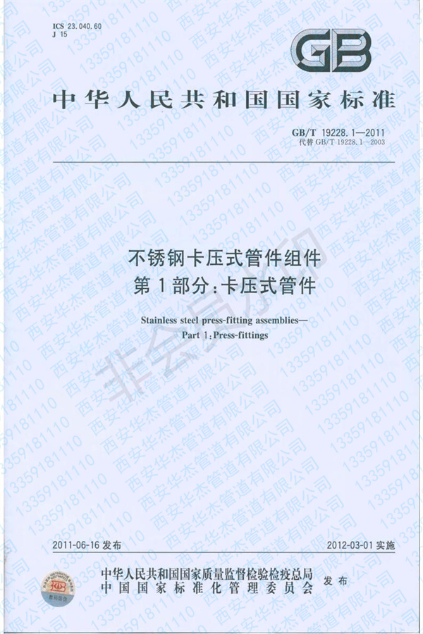 GB/T 19228-2011 《不锈钢卡压式91香蕉视频污版组件》